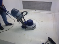 Shot-blast or grind surface,Sand, and vacuum debris.