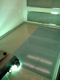 Recent advances in lighting and power supply technology have given rise to the development of new “portable” UV curing equipment. Coating manufacturers began formulating specially designed UV-curable coatings for site-applied applications. These are available in a variety of colours and sheens, and most have an unlimited pot life. As a result, the benefits of UV finishes are now available for refinishing Concrete,Smoothing Compounds, Lino,Vinyl,Rubber, Terrazzo and Wood floor surfaces.